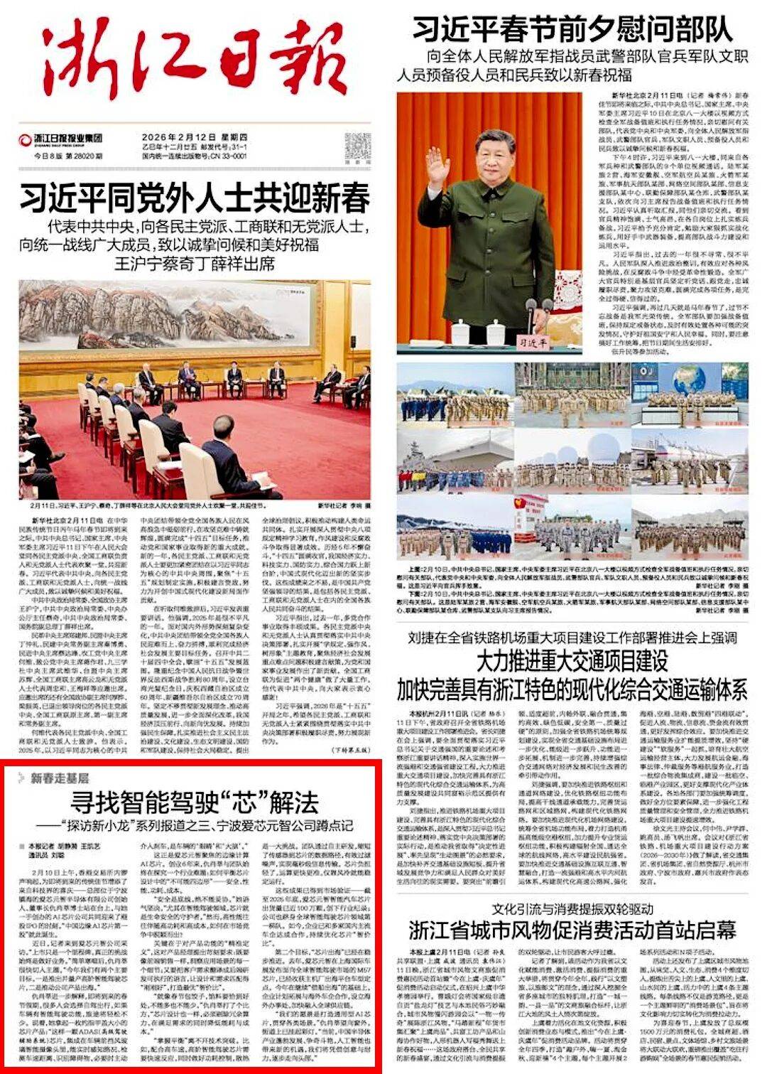 12日2月,波镇海的爱芯元智半导体有限公司《浙江日报》头版眷注总部位于宁亚星代理管理网驾驶“芯”解法解密企业智能。