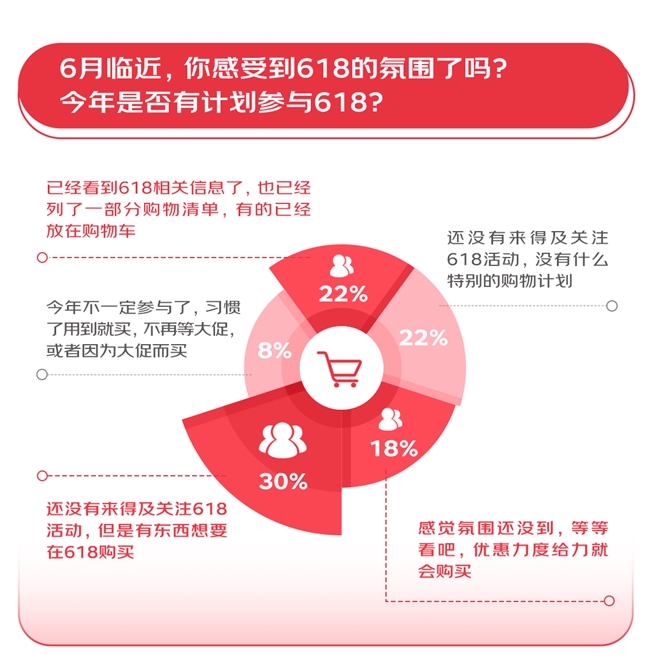 显示调研,618时候有消费志愿七成消费者清楚呈现正在,一经列出了购物清单22%的用户呈现,东西思要正在618购置30%的用户呈现有,闭怀全体运动消息但还没来得及全体,示感应气氛还没到18%的消费者表,等等再。看出不难,的消费志愿清楚大局限消费者,态愈加理性但消费神,据本身的现实需求选好买好盼望正在相对会集的时代里根,带节律”不思被“,一个月的“经久战”正在购物这件事进取行。