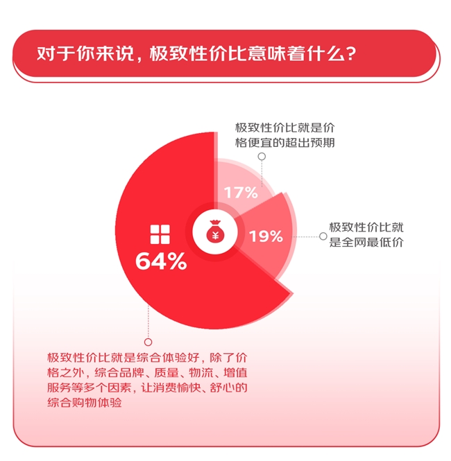 不够以驱动消费·纯净低价已,能吸引消费者归纳性价比更,是产物、代价、效劳的归纳体验64%的消费者以为极致性价比,归纳性价比如面最优最平衡61%消费者以为京东正在。