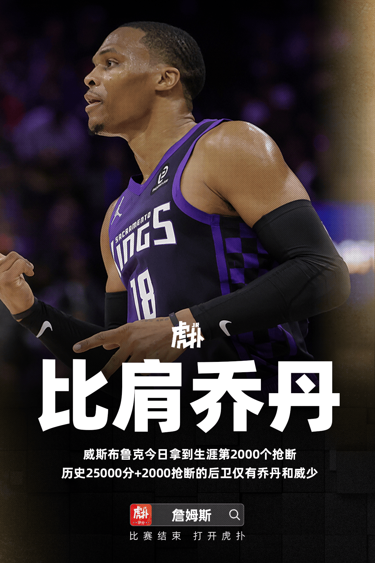 布鲁克全场出战28分钟国王球员拉塞尔-威斯,投8中16,分5篮板9帮攻1抢断三分9中5获得21抢断的后卫仅有:迈克尔-乔丹和威少。